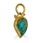 Radiating color and grace, this 24k Gold Pear-Shaped Pendant features a luminous natural turquoise a gemstone cherished since antiquity for its beauty and protective energy. The elegant pear shape softens the intensity of pure gold, creating a perfect harmony between form and color.